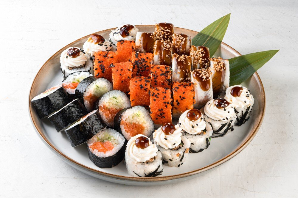 Калифорния с лососем + Черный дракон + Теряки маки + Мак с лососем и огурцом