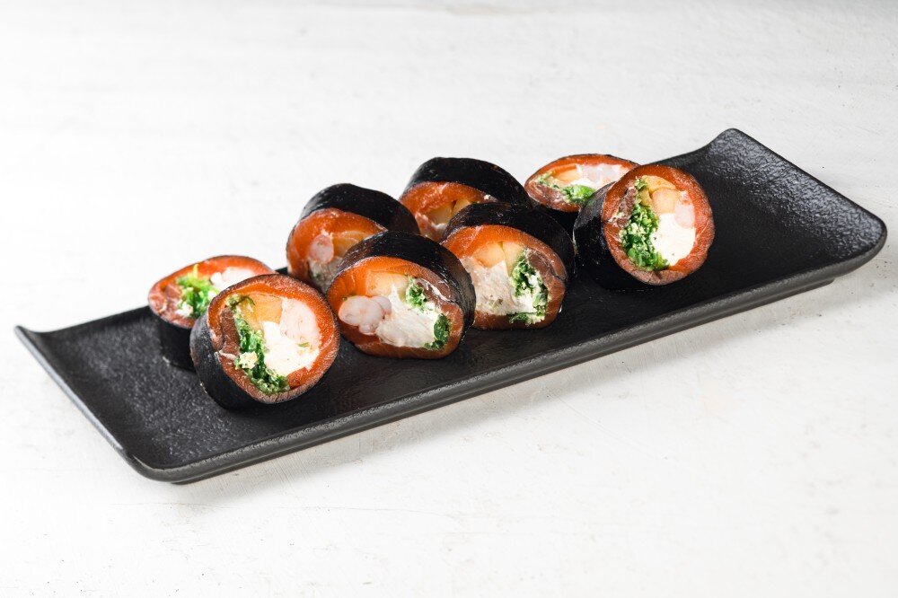 Нори, сыр , лосось, чукка салат, креветки, манго